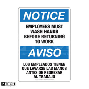EMPLOYEES MUST WASH HANDS BEFORE RETURNING TO WORK.